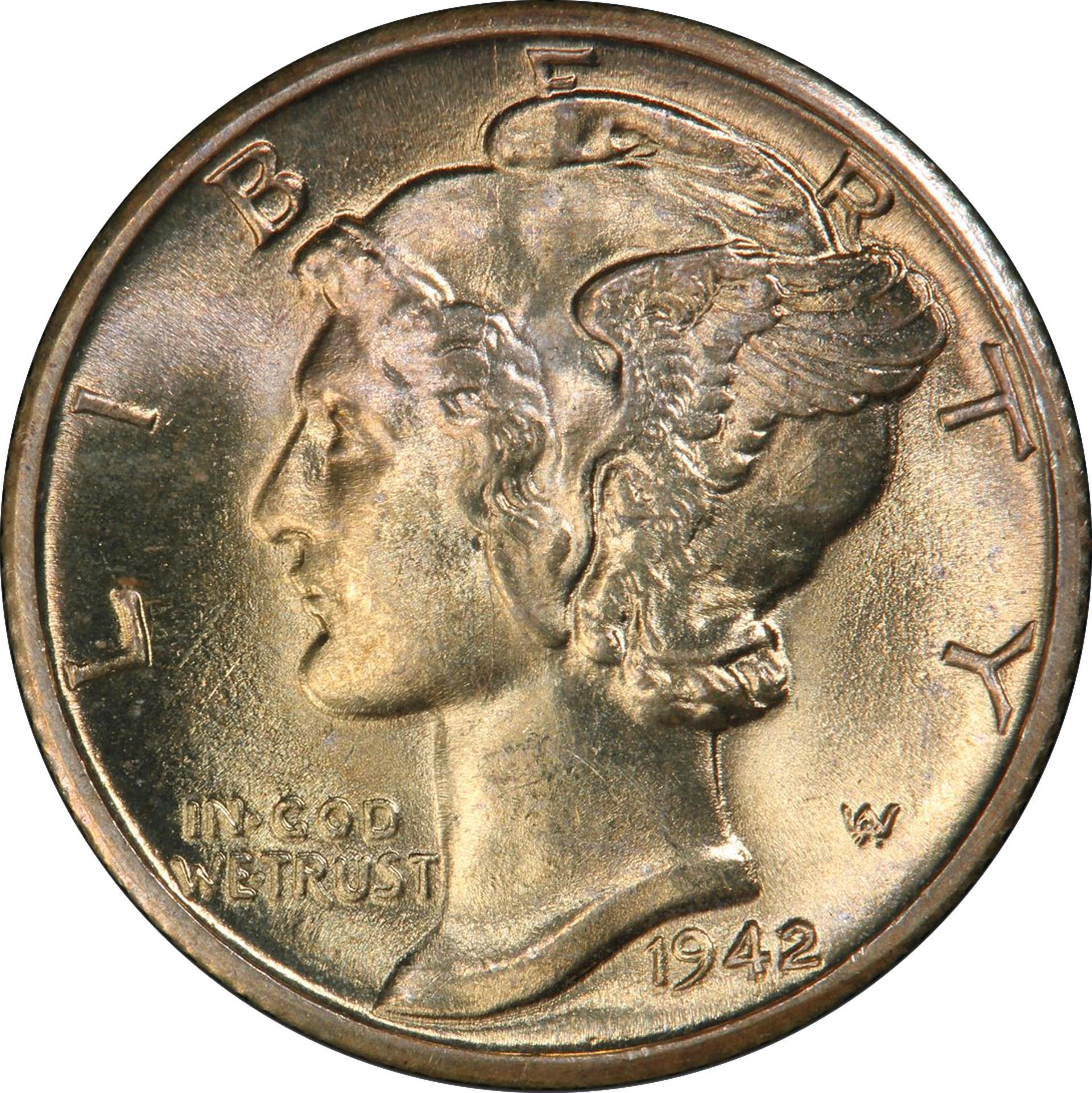 1942/1-D MERCURY 10C MS65+ FB