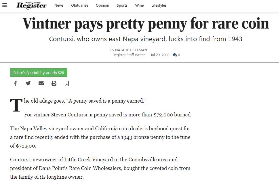 Vintner Pays Pretty Penny for Rare Coin - Napa Valley Register